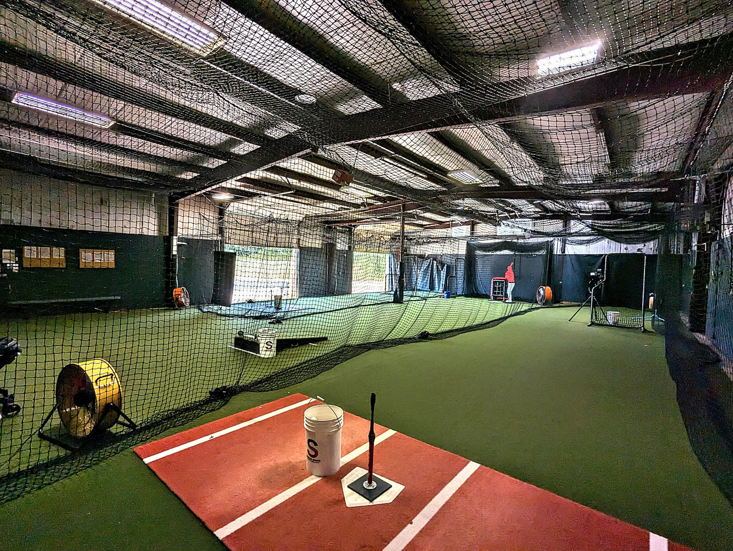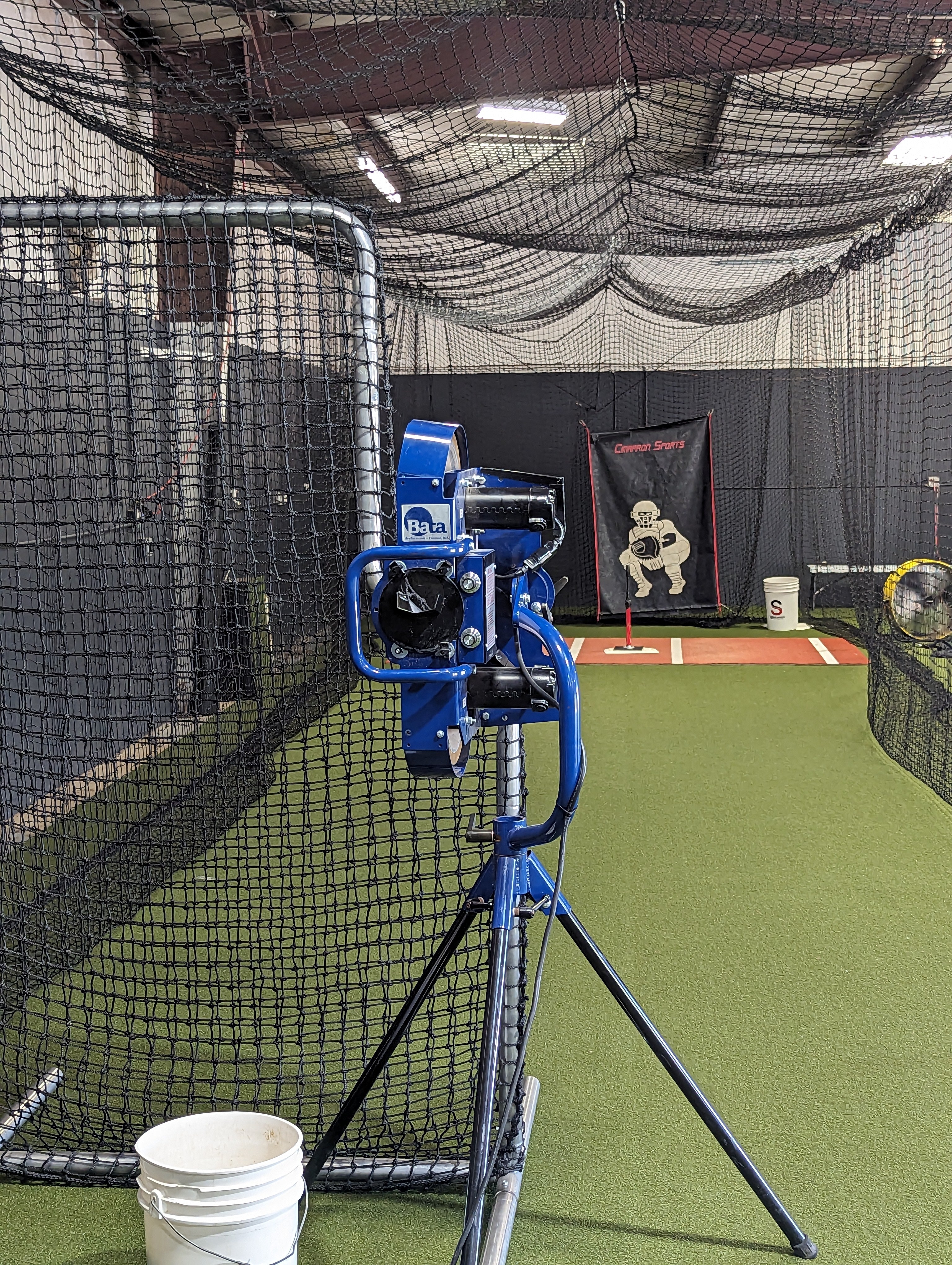 Sandlot Sports is a 3500 sq ft turfed batting cage facility with 3 retractable cages, softball and baseball pitching machines, 3 L screens, pitching mound, and a variety of training equipment. Our facility is a versatile space designed for youth athletes to develop their skills and reach their goals! Additionally, we have an outdoor field available for booking. The outdoor field has a backstop, home plate, and adjustable bases from 50-70 feet to accommodate baseball, softball, and t-ball.